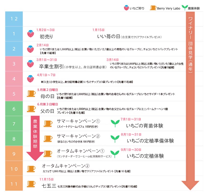 | いちご狩り | 10:00〜16:00 | 1月1日 |